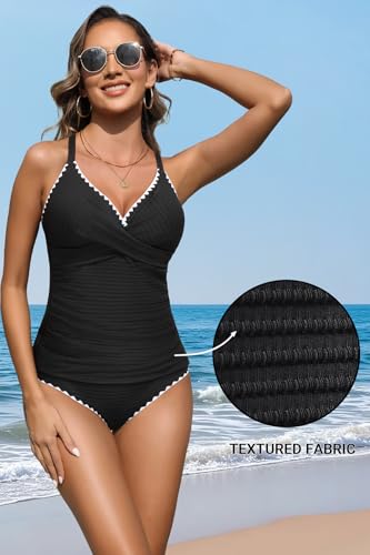 • 2 Piece Tankinis For Women: This stylish tankini set features a trendy twisted front detail and V-neckline that enhances your shape, with shell-stitched trim adding fashionable flair. Cross-back straps ensure non-slip security.