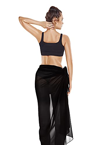 Geyoga Women Swimsuit Cover up Black Long Sarong Skirt Ladies Bikini Wrap Skirt Beach Chiffon Bathing Swimwear Pareo Wrap for Vacation, Plus Size 4