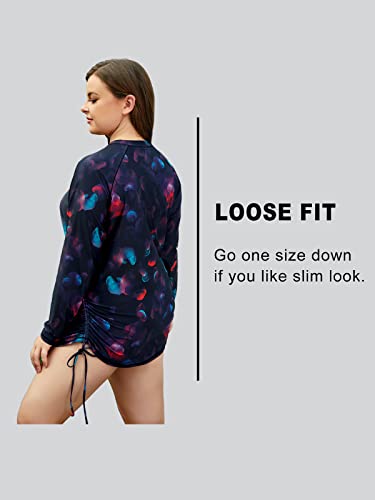 Halcurt Plus Size Rash Guard for Women UPF 50+ Zip Drawstring Ruched Pocket Top 2