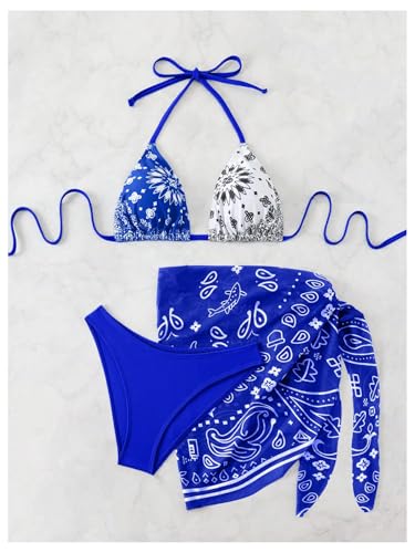 SOLY HUX Bathing Suit for Women 3 Piece Paisley Print Halter Triangle Bikini Sets Swimsuit with Beach Skirt 3