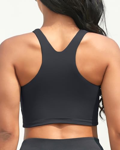 • Crop swim top: The long-line bikini top is equipped with removable cups that can stabilize your breasts, making it suitable for ladies with large breasts.