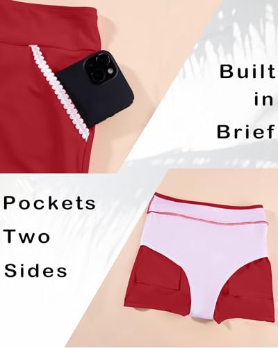 • Swim Suit Shorts Bottoms with Pockets : Boy shorts bottoms of tankini swimwear comes with convenient 2 side pockets, perfect for holding keys or a phone; Black built-in brief swimming shorts offer additional security