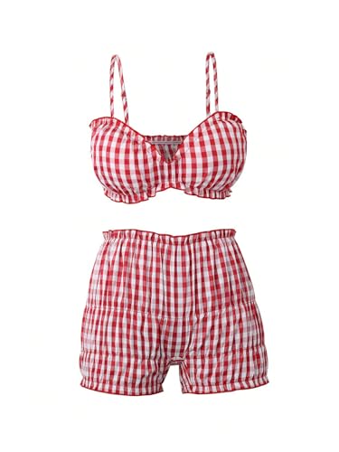 More information about GORGLITTER Women's Two Piece Plaid Gingham Ruched Swimsuit Frill Trim Swim Shorts Bikini Sets
