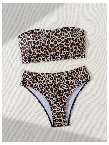 More information about MakeMeChic Women's Bandeau Bikini Sets Strapless Tropical Print High Cut 2 Piece Bathing Suit