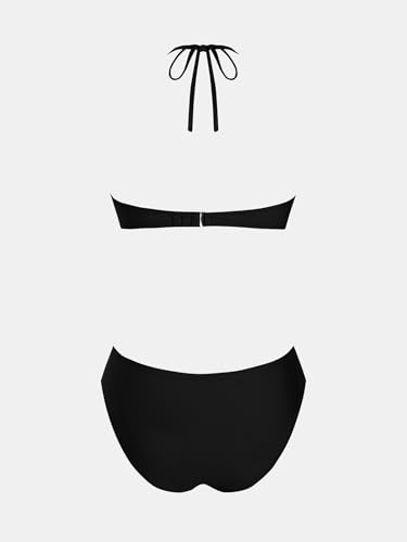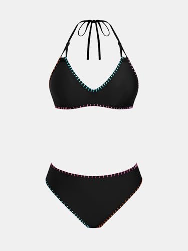 • Design: The Women's Two Piece Bikini Sets Features A Flattering V Neck Halter Design With Contrast Stitching Detailing, Reinforced Back Hook, And Cutout Strap Accents, Paired With Mid Rise Bottoms For A Crafted, Tailored Fit