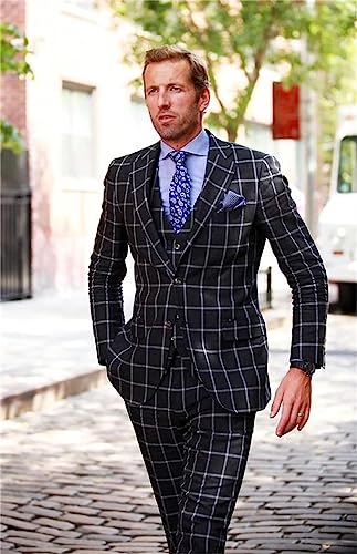 Mens Plaid Suit 3 Piece Slim Fit Suit Formal Wedding Prom Dress Suit Casual Tuxedo Suits for Men 3