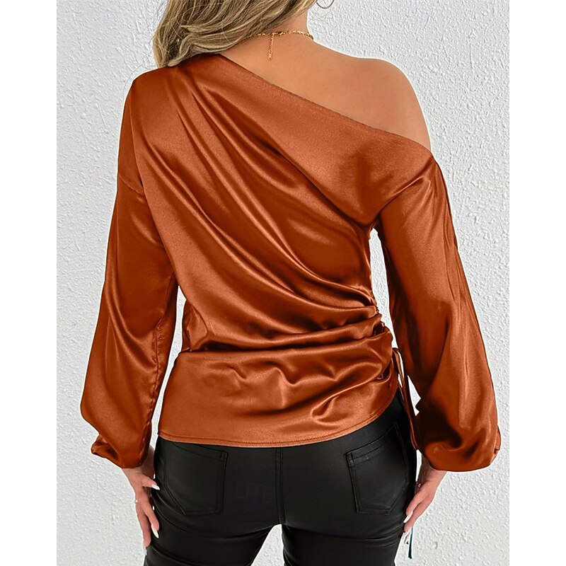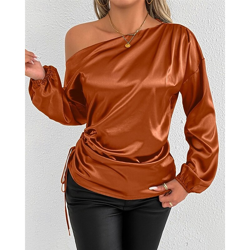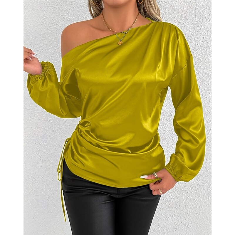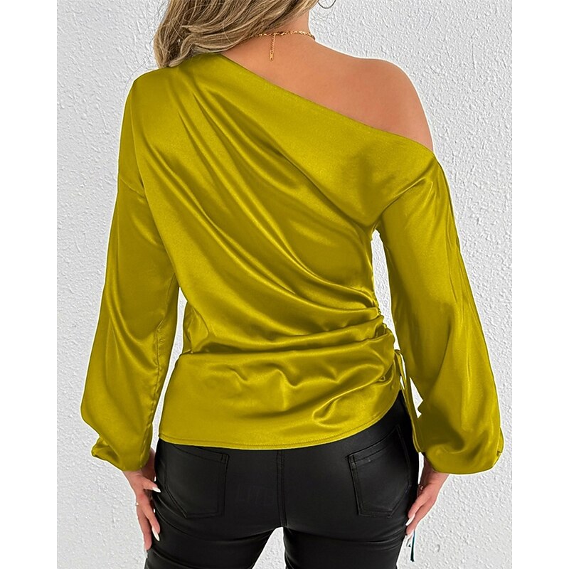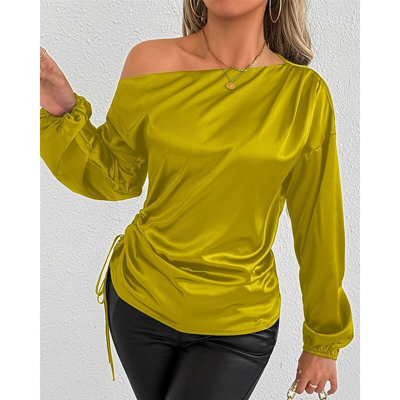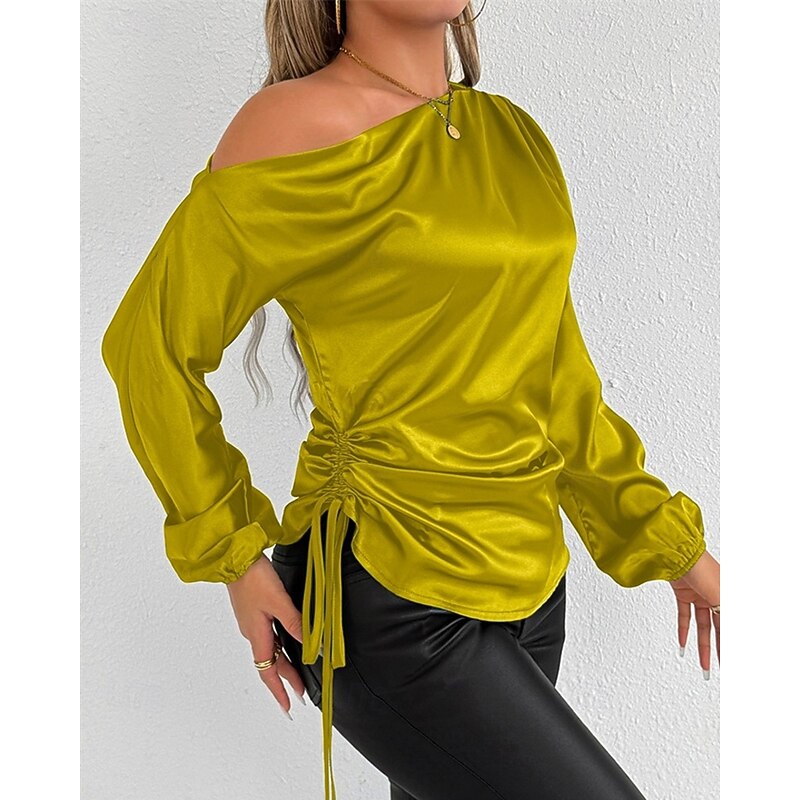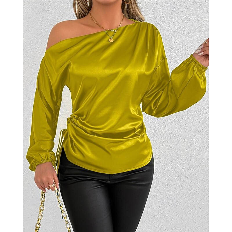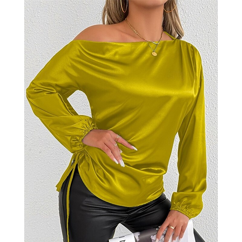 More information about Women's Shirt Elegant Dressy Satin Solid Color Stylish Casual Long Sleeve Cold Shoulder Regular Tops Daily Going out Asymmetric Yellow Brown Spring Fall
