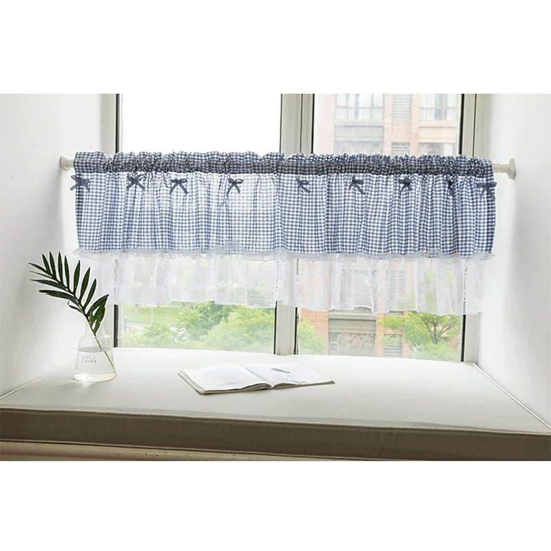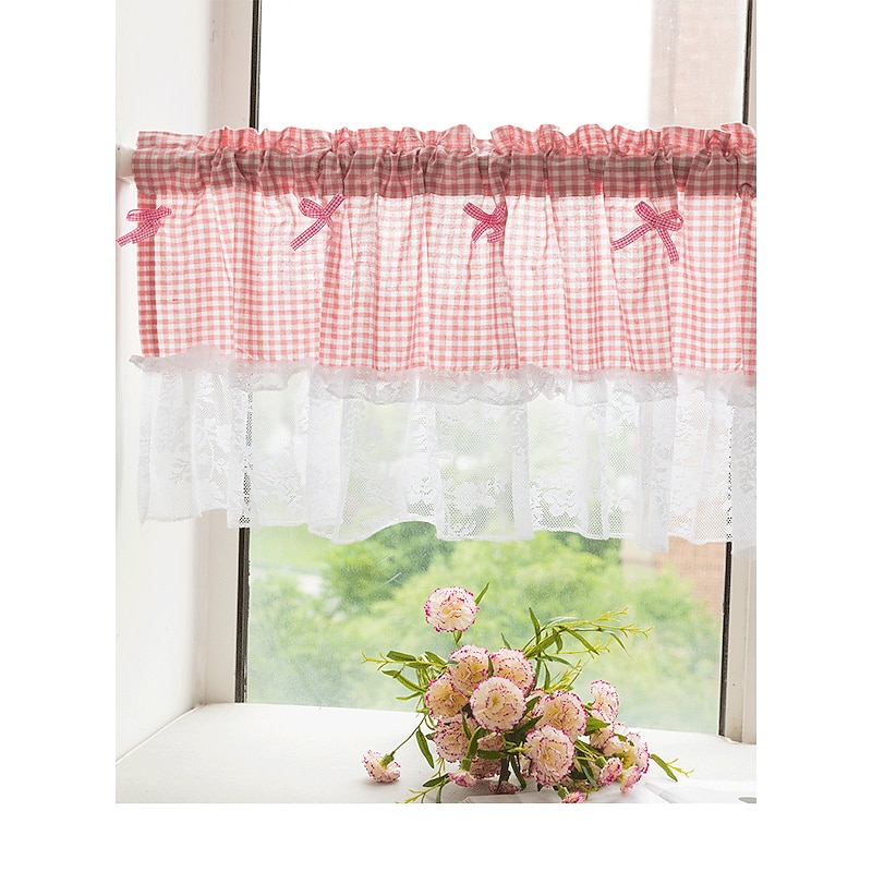 HOT ! Kitchen Curtains, Valance Curtains, Short Cafe Curtains Farmhouse Tier Curtains Short Window Treatments With Lace 1 Panel Rod Pocket Plaid