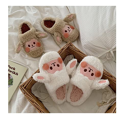 Kawaii Fuzzy Sheep Slippers Cute Soft Warm Cozy House Slippers Winter Fluffy Funny Animal Shoes 7