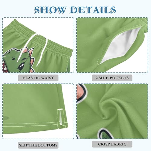 DOMIKING Hatched Dinosaur Green Kids Shorts Pull-on Boys Shorts with Elastic Waist Casual Athletic Pants for Summer Outdoor 4