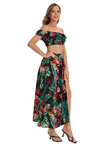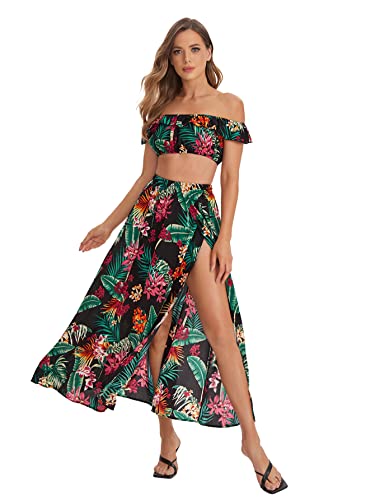 HOT ! Floerns Women's Two Piece Outfit Floral Crop Top and Split Long Skirt Set