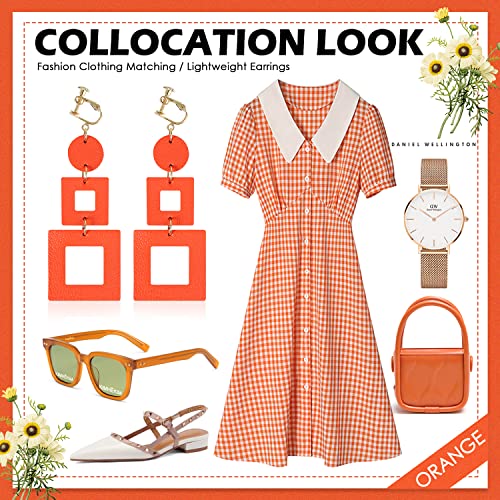 • 【ADJUSTABLE EARCLIP EARRINGS】Each pair of ear clips can adjust the tightness of the ear clips according to their own ears, without causing pain in the ears. Lightweight leather earrings do not make the ear feel burdensome. Earrings do not fall easily. The orange earring length: 3.35”(8.5cm), width is 1.10”(2.8cm), weight is 0.23oz(6.5g), so light. You will receive a nice box with a beautiful pair of hook earrings, thank you card.