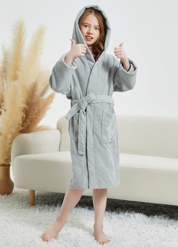 Boys Girls Cotton Robe Lightweight Toddler Hooded Soft Unisex Bathrobe for Kids 6-16 Years 4