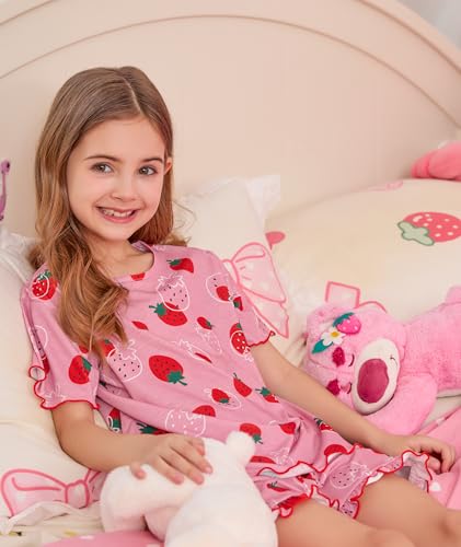 SWOMOG Girls Pajama Set 2 PCS Short Sleeve Tops & Ruffled Shorts with Pocket Girls Summer Pajamas Age 6-15 6