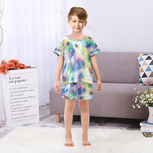 senya Peacock Feather Summer Pajamas Set Short Cotton Sleepwear 2 Piece 1