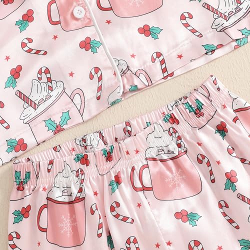 One Opening 1-7T Girls Christmas Pajamas Set Xmas Sleeper Button Down Tops Long Pants Santa Pjs Kids Boy Sleepwear 5