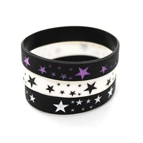 • package includes:3 pieces the stars silicone braceles in purple,black and white colors.
