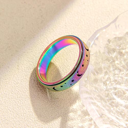 HOT ! Anxiety Ring for Women Spinner Rings:Rotating Rings Stainless Steel 6mm Moon Star Anxiety for Men Band Jewelry Gift for Women Size 6 7 8 9 10