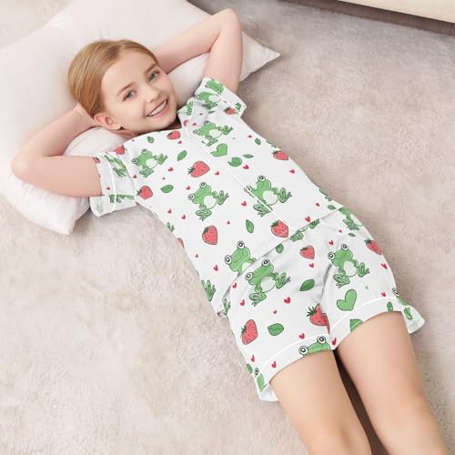 Frog Strawberry Pajamas Set Summer Button Down Sleepwear Pjs Sets Comfy Loungewear 6