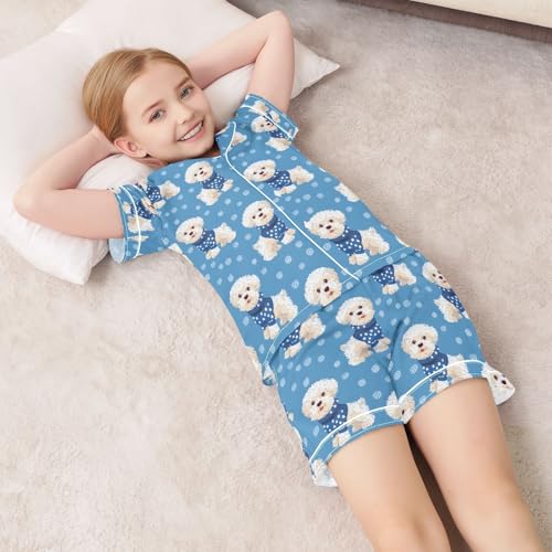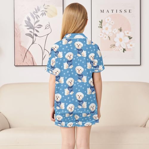 White Dog Blue Dots Pajamas Set Summer Button Down Sleepwear Pjs Sets Comfy Loungewear 4