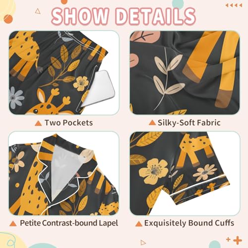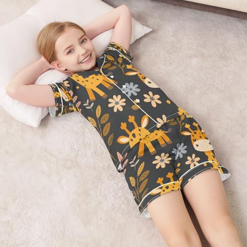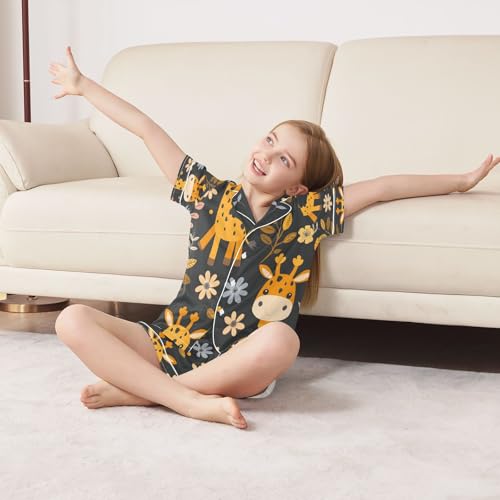 senya Pajama Sets Silky Button Down Nightwear Sleepwear Size 5-14 Years Giraffe Flower 1