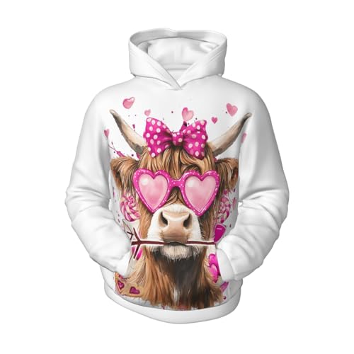 Highland Cow with Heart Sunglasses Hoodie Youth Hooded Sweatshirt 3D Digital Printed With Pockets Tops 3