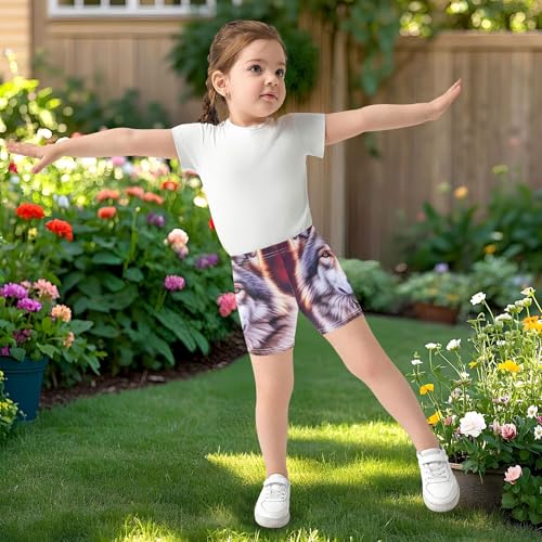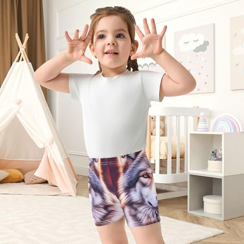Gray Wolf Wild Animals Sunset Girls' Biker Shorts Toddler 4t Under Dress Shorts Funny Cotton Dance Clothes 2