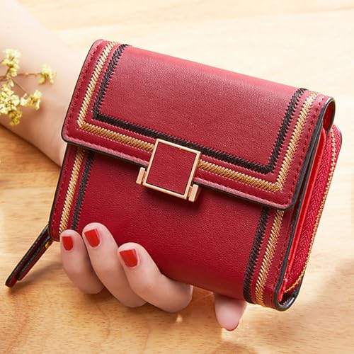 HOT ! Red Wallet for Women and Ladies Small Cute Leather Coin Purse with Minimalist Design Credit Card Holder and ID Window Kawaii Travel Cash Wallet for Ladies
