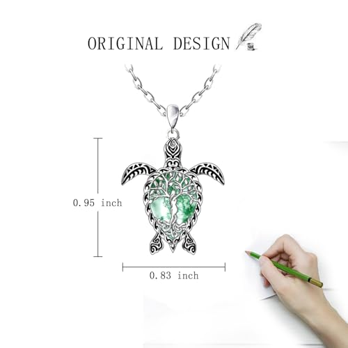 Turtle Necklace Moss Agate Tree of Life Sea Turtle Necklace for Women Sterling Silver Ocean Beach Hawaiian Sea Jewelry Gifts 7