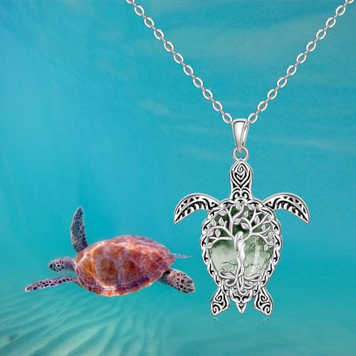 Turtle Necklace Moss Agate Tree of Life Sea Turtle Necklace for Women Sterling Silver Ocean Beach Hawaiian Sea Jewelry Gifts 5