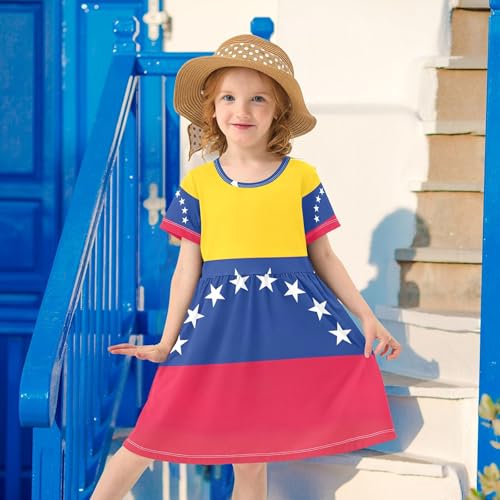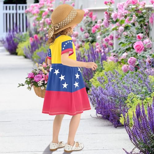 Venezuela Flag Toddler Dresses for Girls Floral Cute Sundress Summer Outfits Children Dress 2t 7