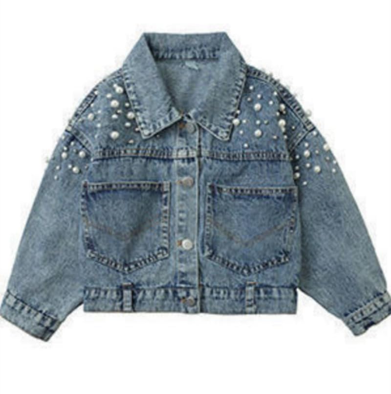 HOT ! Girls' Classic Pearls Denim Trucker Jacket Kids Button Down Jeans Coat Outwear