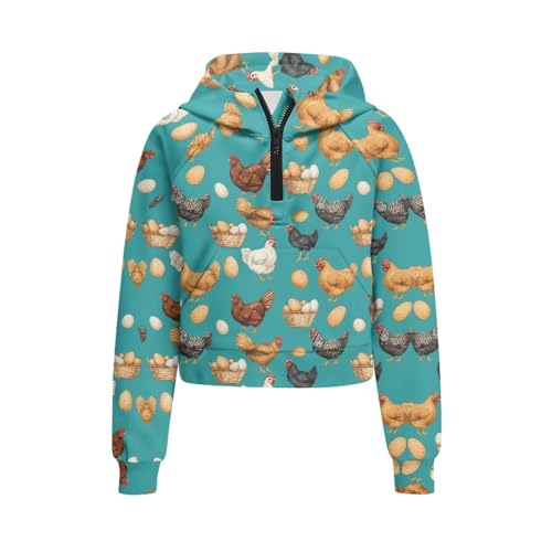 HOT ! Teens Girls Pullover Hoodies Half Zip Hooded Sweatshirt Soft Long Sleeve Cropped Top Hoodies Jackets with Pocket