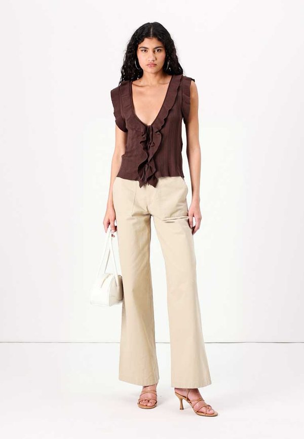HOT ! ONLNELLY V NECK STRING CARDIGAN - Top - chocolate martini