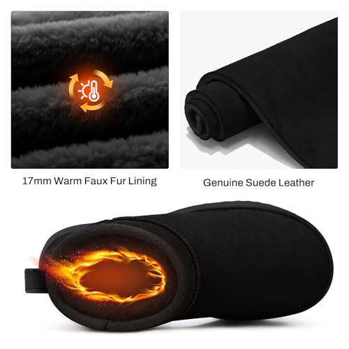 • Genuine Leather Upper: These mini winter boots for women feature a 100% premium genuine suede leather upper, offering a water resistant, dust-proof and easy to clean, making your life more convenient. Lined with 17mm soft fax fur, these fuzzy snow boots women provide superior warmth and comfort for all-day wear during the coldest months.