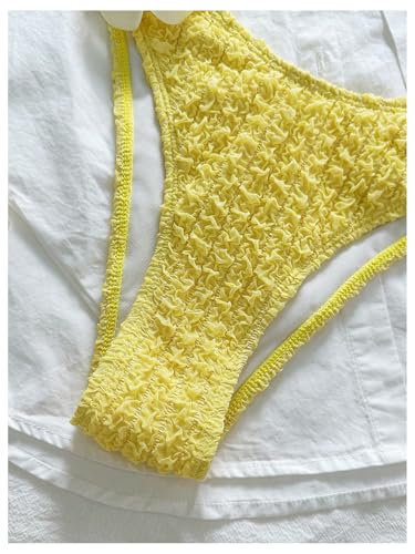 MakeMeChic Women's 3D Flower Bikini Set Textured Tie Back Spaghetti Strap Swimsuit Beachwear 3