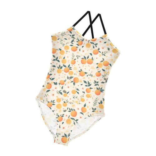 KLL Floral Pattern Orange Fruits Girl 1 Piece Swim Suit Summer Swimming Suits Adjustable Shoulder Strap Quick Dry 5