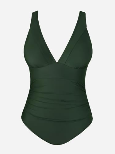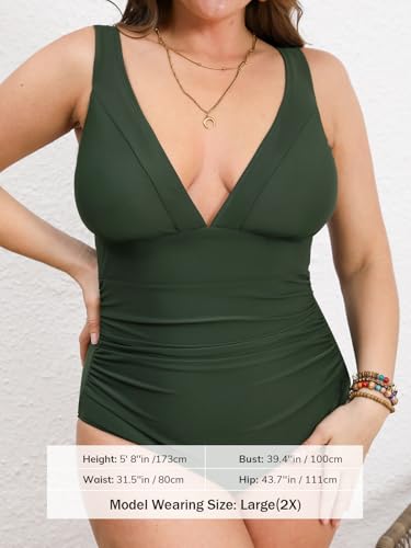 • Design: This plus size one piece swimsuit features a sexy deep V neck design, adjustable straps and back hook closure with hollow details. The ruched detailing enhances your curves while providing confidence for any beach look.