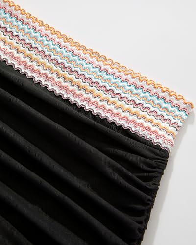 RXRXCOCO Mesh High Waisted Bikini Sets for Women Tummy Control Bathing Suits Color Block Two Piece Swimsuits with Skirt 6