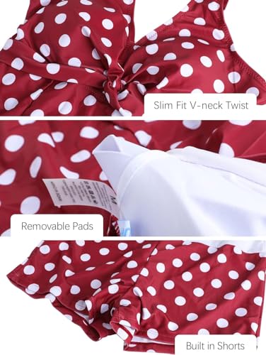 ECUPPER Women One Piece Swimsuit Tummy Control Plus Size Swimdress V Neck Vintage Bathing Suits Skirt Swimwear 4