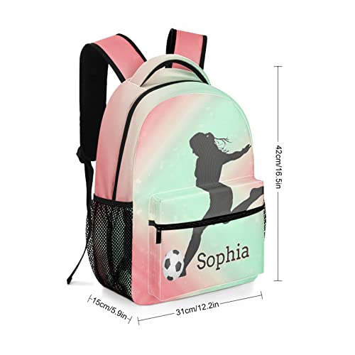 Cute Girls Soccer Backpack Personalized Book Bag Sport Casual Hiking Camping Pack with Name 6