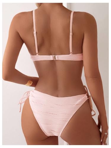 SweatyRocks Women's Bathing Suit Spaghetti Strap Tie Knot Bikini Set Underwire Swimsuits 2