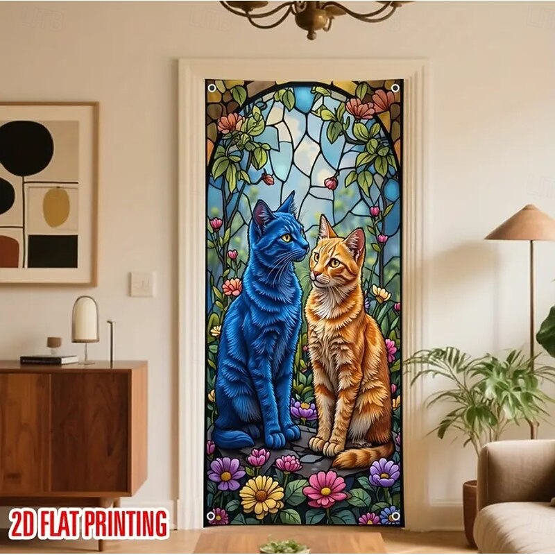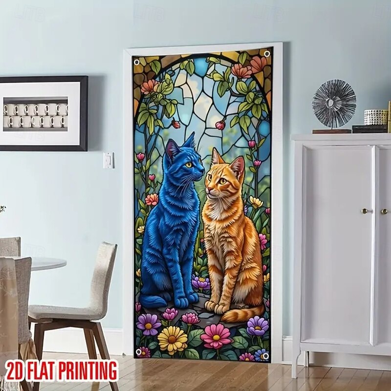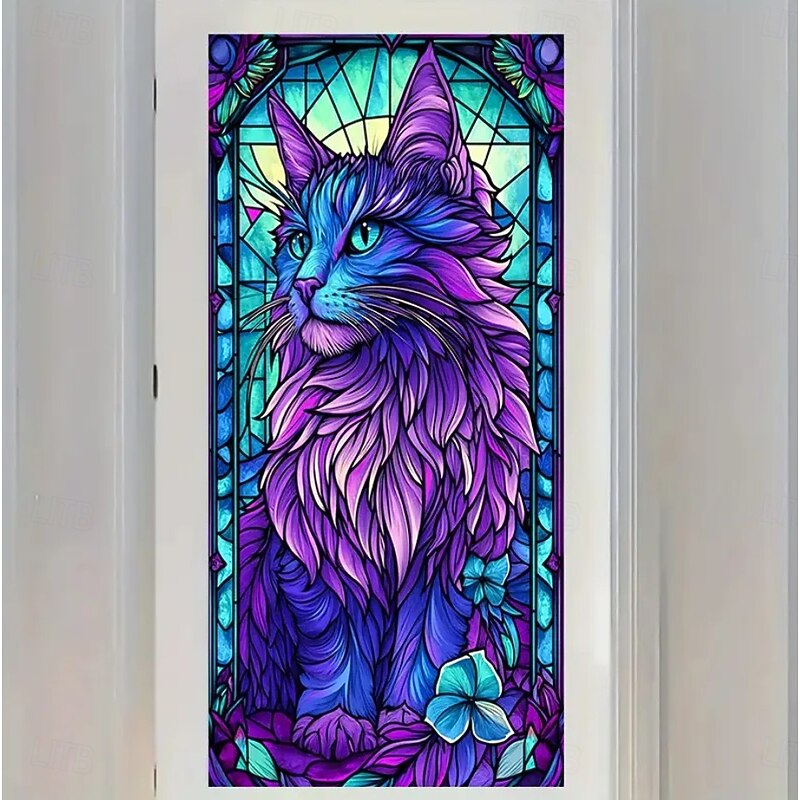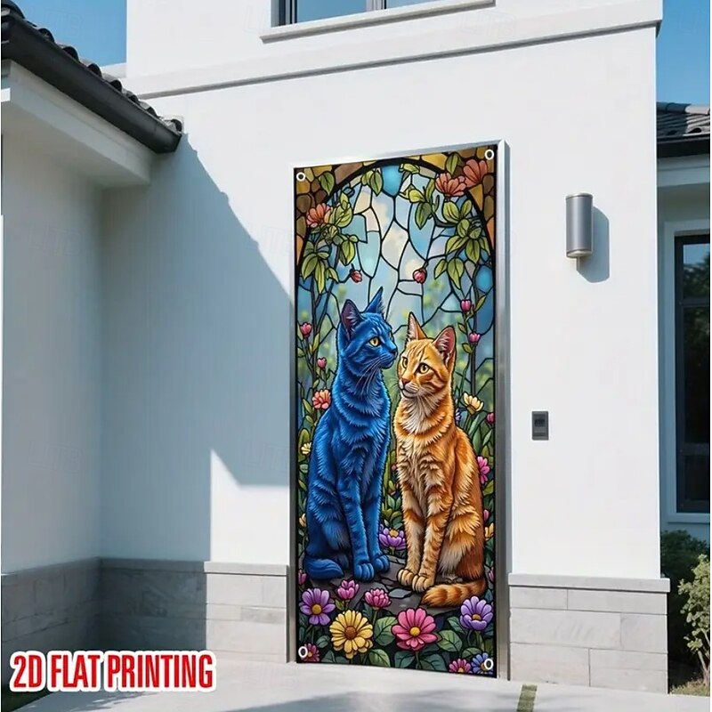 Door Cover Outdoor Banners Cat Stained Glass Aesthetic Mystic Bedroom Living Room Front Door Home Decor 9