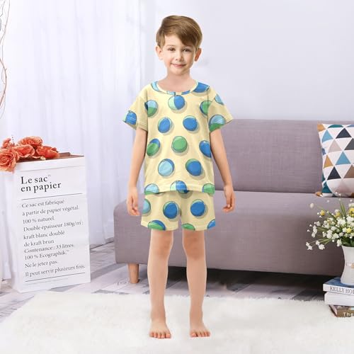 Pajama Short Sets Beach Balls Pattern Print Soft Cotton Summer Sleepwear 2 Piece PJS Size 5-14T 6