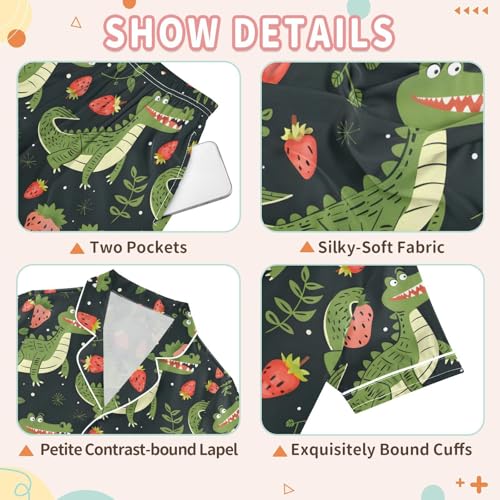 ALAZA Crocodile Strawberry Black Satin Pajamas Set Short Sleeve Button Down Sleepwear Summer Pjs 2 Piece 4