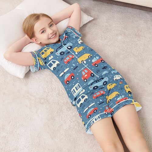 senya Pajama Sets Silky Button Down Nightwear Sleepwear Size 5-14 Years Yellow Red White Plant Car 5