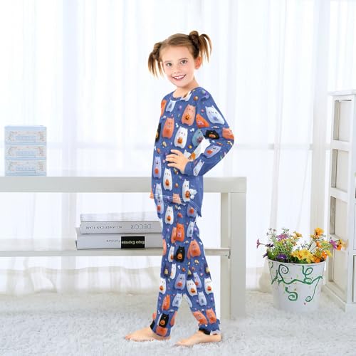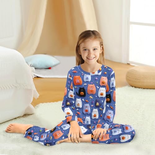 Long Sleeve Pajama Set for Girls Boys Kids,Cute Halloween Cats Pattern Comfy Nightwear Soft Loungewear,Family Matching PJs Underwear Set 8T 4