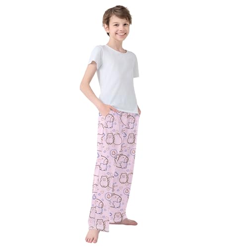 HOT ! Cute Capybara with Hearts Pink Cute Pajama Pants, Soft Sleepwear Lounge Pants Pajama Pj Bottoms for 6-14 Years