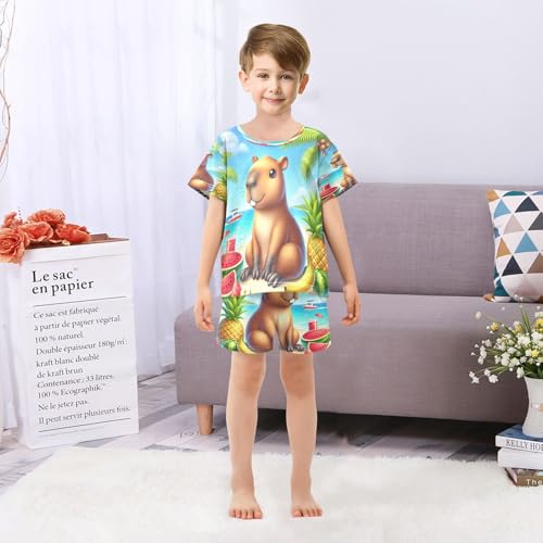 Capybara Summer Fruits Beach Pajama Set Short Sleeve PJ Set Cotton Summer Pajamas Sleepwear Soft 5Y 4