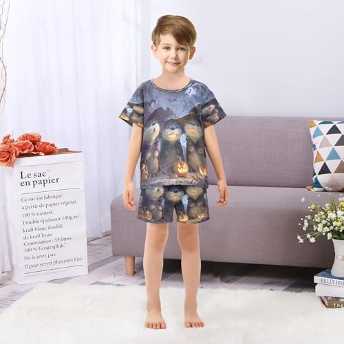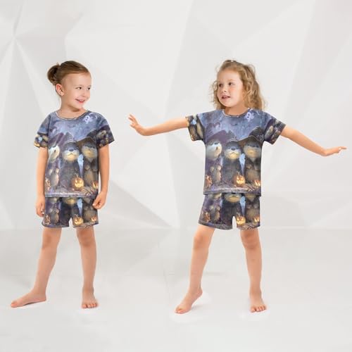 Pajama Sets Short Sleeve Spooky Nitht Witchy Otters Soft Cotton Summer Sleepwear 2 Piece PJS Size 5-14T 2